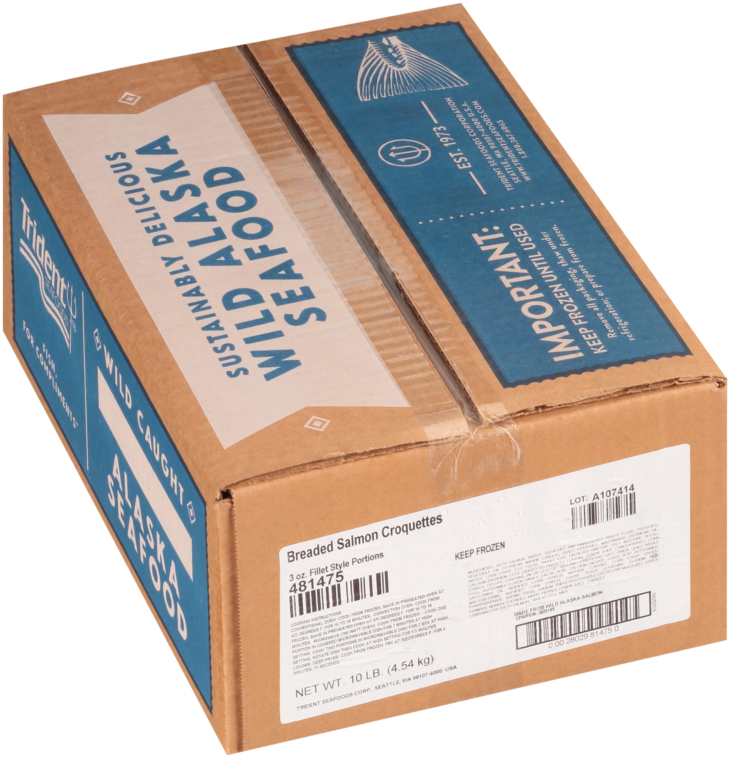 Frozen Seafood Trident Seafoods 3 Ounce Breaded Croquette Cooked Salmon 10 Pound Each - 1 Per Case.