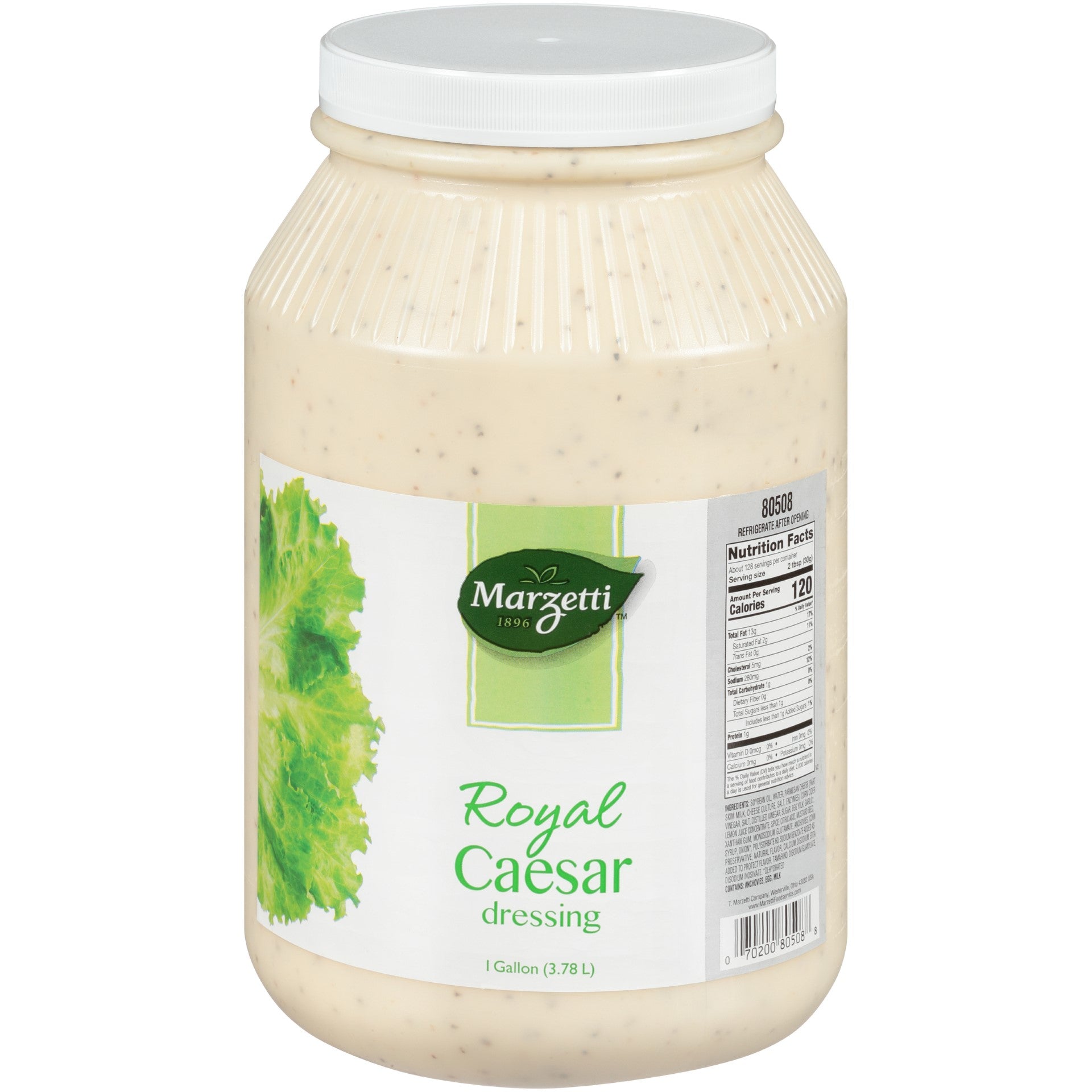 Marzetti Royal Caesar Dressing is a robust and impressive, creamy version of an American classic that's rich with aged Parmesan cheese and just a hint of anchovy blended with soybean oil, eggs, cider vinegar, garlic, onion, lemon juice, black pepper and Worcestershire sauce. The Marzetti brand of dressings, sauces and pastas received its start in Teresa Marzetti's restaurant kitchen. Today, it still embodies her goal of crafting wholesome, flavorful foods that provide convenience and versatility for operators.