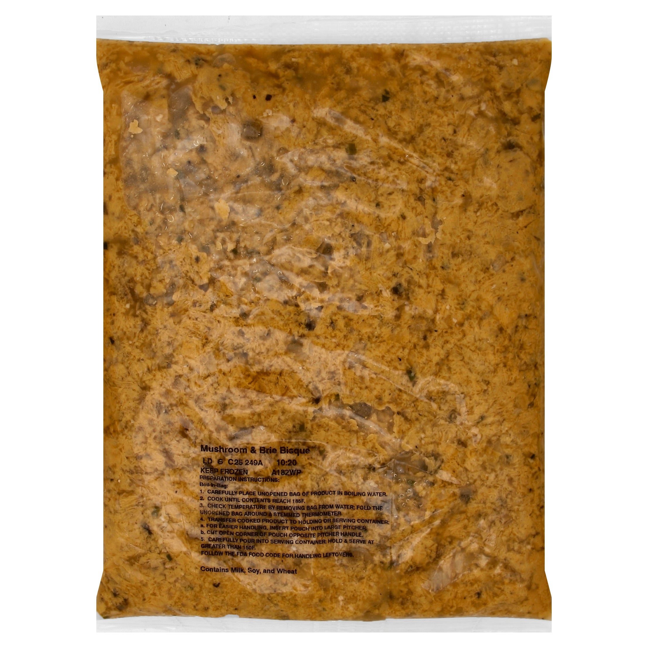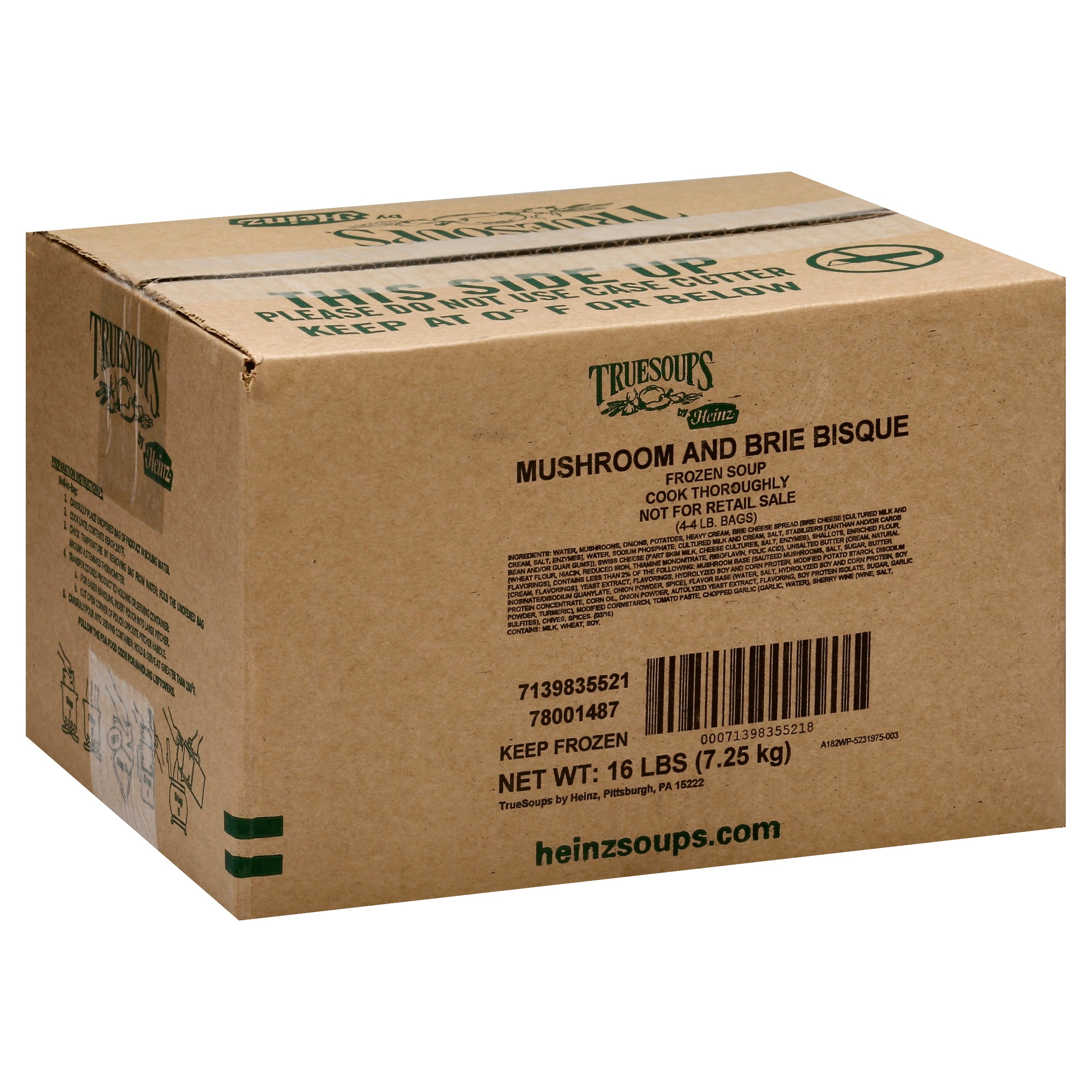 TrueSoups Mushroom & Brie Soup, 4 lb. Bag, 4 Count. Select sliced mushrooms are simmered with shredded potato and shallot in a vegetarian veloute enriched with Brie and Swiss cheeses. Amontillado sherry and snipped chives.