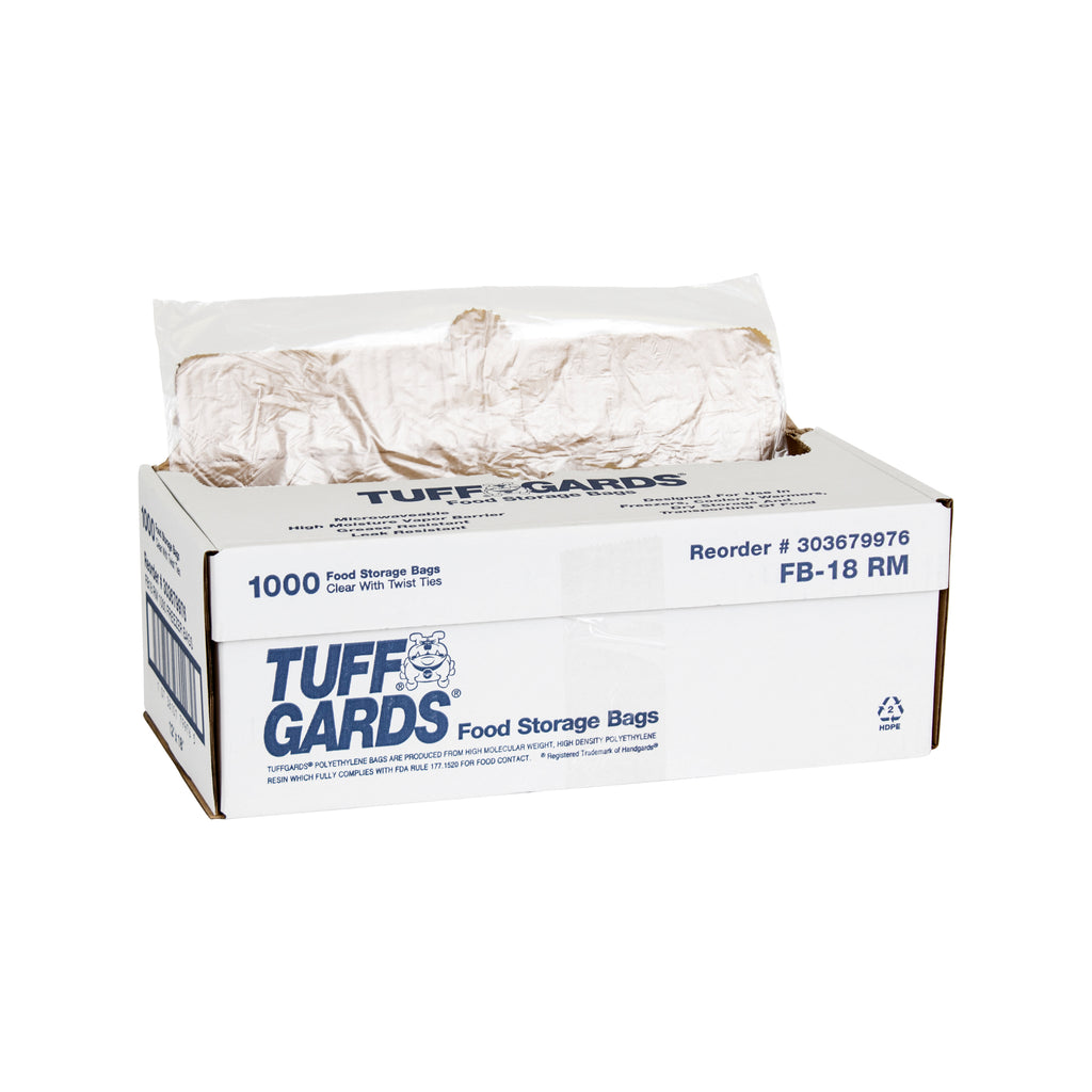 TUFF GARDS 12X18 HIGH DENSITY FREEZER STORAGE BAG CLEAR FLAT ROLL PACK WITH TWIST TIE CLOSURE