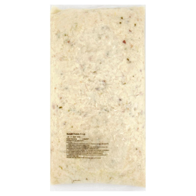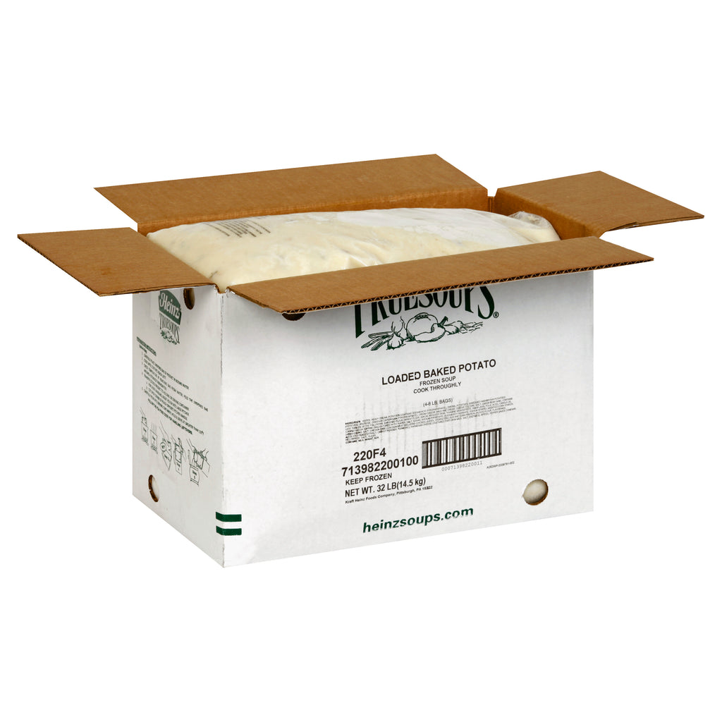 Heinz TrueSoups Loaded Baked Potato Soup, 8 Lb. Bags (4 per case) offer convenient use for back-of-house preparation in restaurants, cafeterias, commercial kitchens and more. Our satisfying, homestyle recipe blends indulgent ingredients like bacon and potatoes in a gourmet cream sauce for an elevated soup experience customers will come back for. Versatile Heinz TrueSoups is a premium, ready-to-heat line of classic and new soup varieties made with quality ingredients. Our soup pairs well with crackers or a baguette and can be enjoyed as a side, starter or entree. Available in a wide array of flavors and sizes, Heinz TrueSoups is frozen for optimal flavor and texture to create the perfect bowl, every time. At home and away from home, consumers know and love the great taste of Heinz TrueSoups.