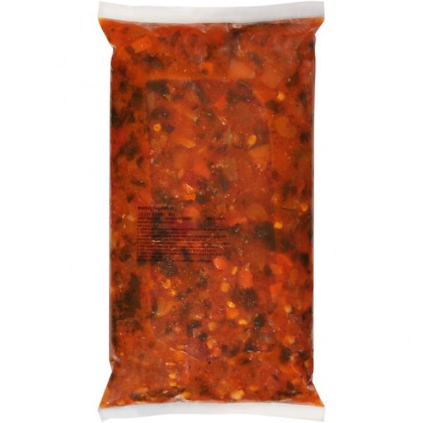 TrueSoups Market Vegetable Soup - 8 lb. bag, 4 per case A melange of fresh vegetables - carrot, celery, onion, spinach, potato, zucchini and tomato braised in an herb scented vegetable broth with baby lima, garbanzo and green beans. Frozen, Ready to Use