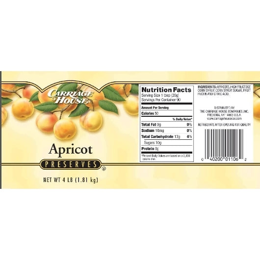 Carriage House Preserves Apricot Glass, 4 Pounds, 6 Per Case.
