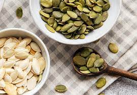 Pumpkin seeds, also known in North America as a pepita, is the edible seed of a pumpkin or squash. These seeds are typically flat and asymmetrically oval, have a white outer husk, and are light green in color after the husk is removed. Pumpkin seeds are highly nutritious and packed with powerful antioxidants. Eating them can may protect against various health problems and have been shown to improve heart health, blood sugar levels, fertility and sleep quality. Pumpkin seeds can be eaten raw but taste especially delicious roasted. To roast, toss them in olive oil or melted butter, plus salt, pepper, and any other seasonings you desire. Spread them on a baking sheet and cook them in the oven at 300°F (150°C) for 30–40 minutes, or until brown and crunchy.