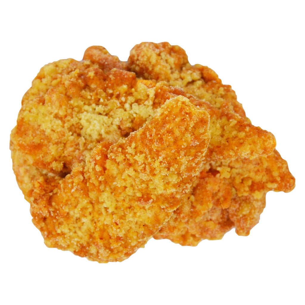 - Infused with cayenne pepper spice and then coated in a crunchy, golden-brown panko breading with toasted highlights