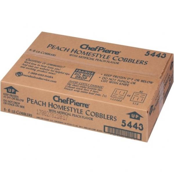 Bake - Baking Directions 1. Place Sheet Pan In Oven. Preheat Conventional Oven To 400F Or Preheat Convection Oven To 350F (With Blower Fan On). 2. Remove Frozen Cobbler(S) From Shipper; Discard Protective Lid(S). 3. Place Frozen Cobbler(S) On Preheated Sheet Pan. 4. Bake In 400F Conventional Oven 85-90 Minutes Or Bake In 350F Convection Oven 75-80 Minutes (With Blower Fan On). Bake Until Crust Is Light Brown And Filling Begins To Boil. Filling Temperature Must Reach 145F. Note: Ovens Vary, Adjust Time And Temperature As Necessary. 5. Remove Cobbler From Oven On Sheet Pan. Never Handle Hot Cobbler(S) By Edges Of Cobbler Foil! 6. Cool To Room Temperature About 1- 1/2 Hours. 7. Release Cobbler By Using A Knife To Separate Crust From Foil. Cut Into Desired Portions And Serve. Steam Table Holding: Fully Baked Cobbler(S) Can Be Held Uncovered On Steam Table Up To 5 Hours.
