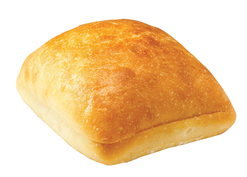 Golden crusty top on this 3.5" x 4" ciabatta bun with attactive golden domed crown. Sliced. Open interior texture makes a delicious sandwich or burger. Fully baked. Thaw and serve.