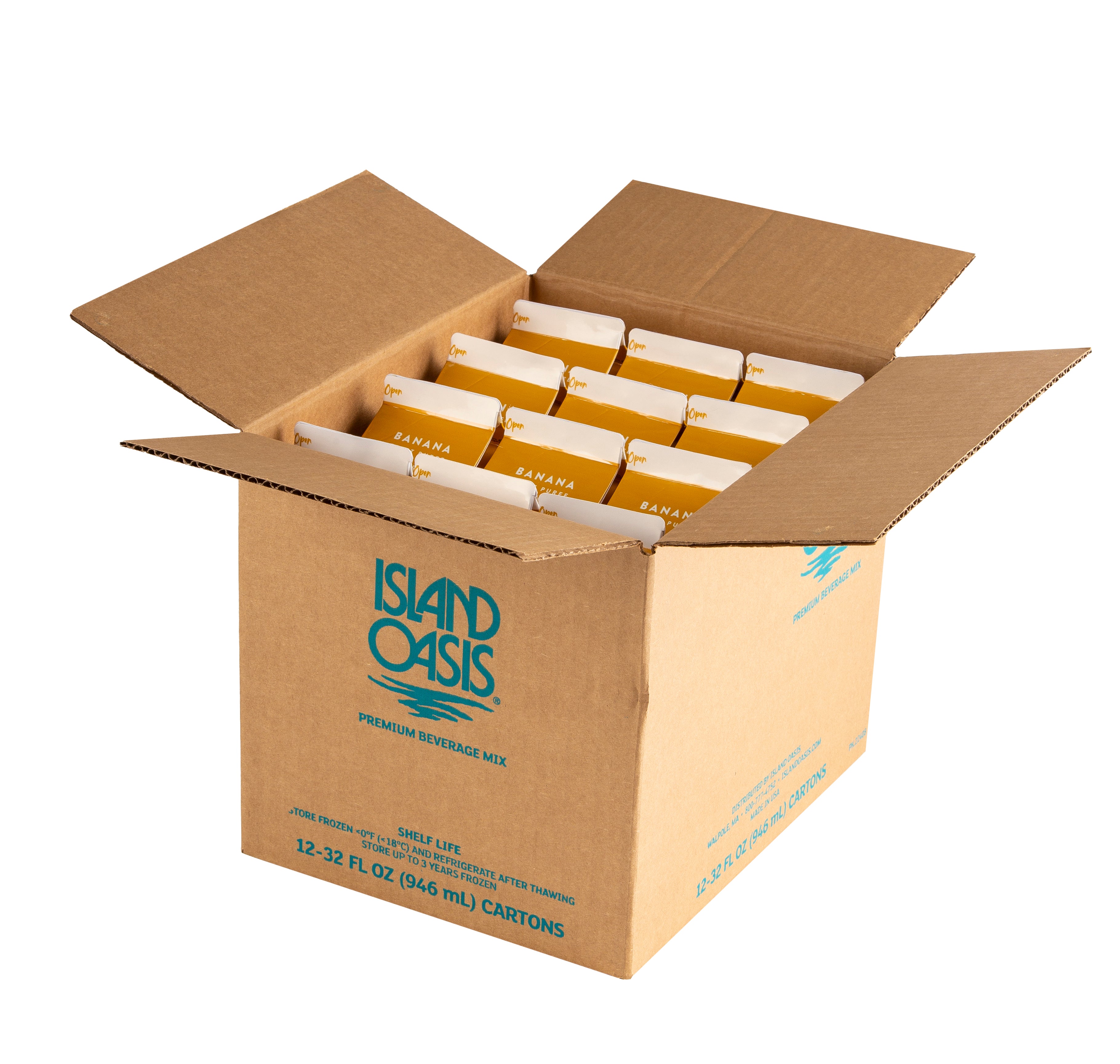 Deliciously smooth Island Oasis Banana Mix provides the ability to add perfectly ripe bananas to your beverages anytime. For a banana-based smoothie, blend with ice and add optional fruit for a custom flavor combination. Use as a base or add just a splash to create signature cocktails and mocktails with smooth banana flavor. Island Oasis is made with natural ingredients, free from artificial flavors, colors and preservatives, Kosher and gluten free. Ships frozen by the case.