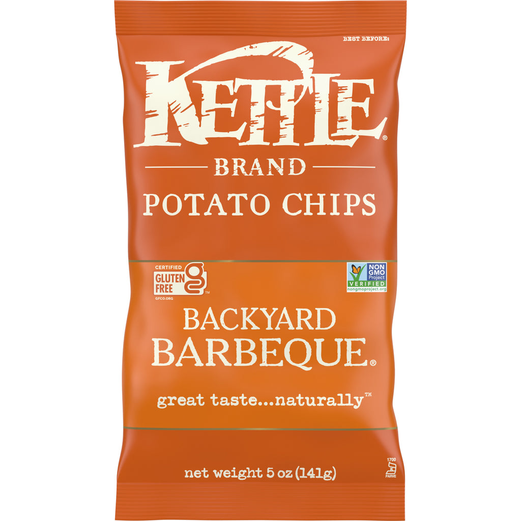 Everyone loves the flavor of Backyard Barbeque - smoky, spicy, tangy and sweet. But, it's the sublime feeling of a classic summertime barbeque that we really love. These Backyard Barbeque beauties are all that, and a bag of chips. So sit back and savor summer's sweet embrace. Kettle Brand potato chips taste so delicious because they're made from authentic recipes with quality ingredients to produce a bold flavor and a hearty crunch.