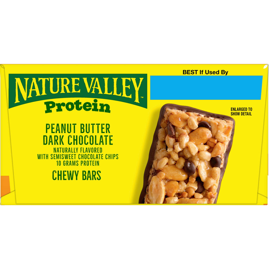 - Nature Valley(TM) Protein Chewy Bars are made with rich dark chocolate chips, roasted peanuts, and creamy peanut butter to blast through your next craving.