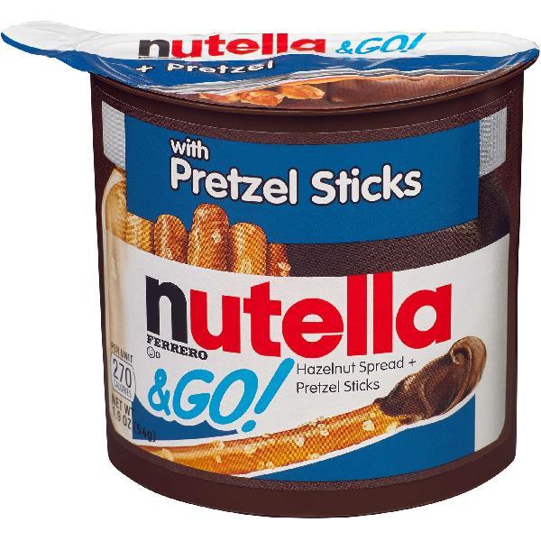 Ingredients: Sugar,palm Oil,hazelnuts,skim Milk,cocoa,soy Lecithin As Emulsifier,vanillin: An Artificial Flavor.pretzel Sticks:enriched Flour (wheat Flour, Niacin, Iron, Thiamine Mononitrate, Riboflavin, Folic Acid),malt Extract,canola Oil,sodium Bicarbonate As Leavening Agent,salt,baker's Yeast,sodium Hydroxide As Ph Control Agent.