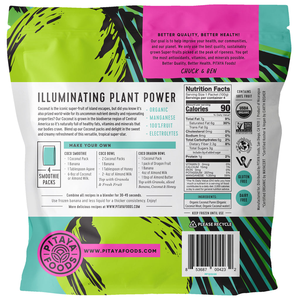 Coconut is the iconic super-fruit of island escapes, but did you know it's also prized world-wide for its uncommon nutrient density and rejuvenating properties Our Coconut is grown in the biodiverse region of Central America so it's naturally full of healthy fats, vitamins and minerals that our bodies crave. Blend up our Coconut packs and delight in the sweet and creamy refreshment of this versatile, tropical super-star.